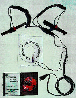 The patented system is comprised of a unique Peel N’ Stick Sensor™, a pair of attachable “steering switches”, the ICE™ computer interface cable and an audio-visual touring disc.